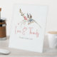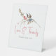 Add a touch of rustic charm to your bridal shower with this elegant table top sign. Featuring beautiful watercolor berries and botanicals, the sign displays the words "Love & Thanks" in trendy red script lettering. Perfect for fall, autumn, or winter events, this sign can be customised using the template fields to add your personalised text. Ideal for bridal shower signs and party favours, this design combines rustic elegance with a botanical flair. To see the matching theme, visit www.zazzle.com/lovelypaperboutique.