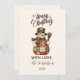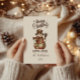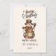 A cosy rustic Christmas design featuring a charming snowman dressed in a quilted patchwork coat, plaid scarf, and country hat. The warm earthy tones and vintage textures create a nostalgic farmhouse feel, perfect for winter gatherings, barn parties, or cosy family celebrations. A timeless and heartwarming invitation that captures the spirit of a country Christmas.