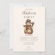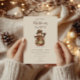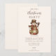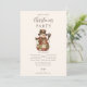 A cosy rustic Christmas design featuring a charming snowman dressed in a quilted patchwork coat, plaid scarf, and country hat. The warm earthy tones and vintage textures create a nostalgic farmhouse feel, perfect for winter gatherings, barn parties, or cosy family celebrations. A timeless and heartwarming invitation that captures the spirit of a country Christmas.