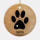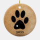 Rustic Paw Print Custom Christmas Ceramic Ornament.