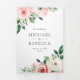 Rustic Peach Floral All in One QR Code Wedding Tri-Fold Invitation