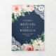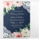 Rustic Peach Floral Lace Navy Blue QR Code Wedding Tri-Fold Invitation