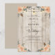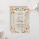 This charming design evokes a warm, rustic ambiance with soft peach floral accents and glowing string lights against a weathered wood backdrop. It's perfect for a romantic, outdoor celebration or a cosy, intimate gathering, setting a welcoming and natural tone for your special day.