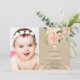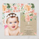 Rustic peach floral watercolors baptism girl photo invitation