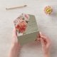 We absolutely loved how these wedding invitations turned out! We went with the standard paper stock, and it is plenty thick. One thing we probably would have changed is not doing the big white block on the front for the recipient address. Our invitations are a dark green. When we went to Staples to look at the options for labels, we saw some cute kraft stock colored ones that would have looked really cute on the dark green rather than using matte clear labels within the white block if that makes sense. They are still adorable though. I just fancied up my matte labels with a little leafy design and pretty font for the names so I feel like it helped it look more cohesive. Also, if you’re worried that they look pricey, make sure to put your quantity in because the price goes down significantly. We found this to be a super affordable, efficient and unique option that checked all of our boxes. When folded, they are the size of a little Google home screen see pictures. Perfect! Colors look exactly as we expected and the printing quality is clear and consistent.