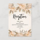 Beautiful rustic peach, pale terracotta and grey watercolor flowers and elegant brown leaves accent these wedding reception enclosure cards with your details in chic lettering. MATCHING items in our collection.