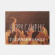 Cute gift for rvers, retired travelers, hikers, campers, and nature lovers is this personalised camping doormat that reads- Happy Campers with a template for adding family name. Against a background photo of a burning campfire and wood. Great retirement gift, too. Would be right at home in front of an RV or cosy log cabin.