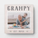 Custom grandpa plaque for Father's Day, birthdays, or Grandparents Day features a favourite photo of his grandchild or grandkids with "Grampy" above in rustic lettering. Personalise with the year he became a grandfather beneath, or add a custom message or name.
