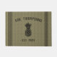 Welcome guests to your abode with this charming rustic farmhouse style doormat. Personalised design features your family name or farm name in black lettering, along with your year established and a pineapple illustration. Rope stripe detailing on a moss green background completes the design.