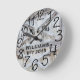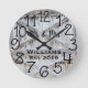 Beautiful, unique, one-of-a-kind personalized design features a faux-rustic grey wood with black personalization his and her names in a script font overlay design and the last name and year established in a bold script with a printed wood effect background. Personalize this clock by adding your personal information. Makes a great wedding, anniversary, or housewarming gift. Click "personalize this template" to change the names, fonts, and colors to create a unique one of a kind design. What an elegant, rustic accessory for your living room, bedroom, or family room. If you need any help with customization please email me at ybnormalone @gmail.com. Thanks for stopping by www.zazzle.com/Personal_Creations. ©Karen Hall for Personal_Creations at Zazzle.