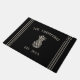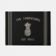 Welcome guests to your abode with this charming rustic farmhouse style doormat. Personalized design features your family name or farm name in neutral tan lettering, along with your year established and a pineapple illustration. Rope stripe detailing on a rich black background completes the design.
