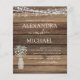 Photo Rustic Farmhouse String Lights and Jar of Baby's Breath Wedding Invitations on Wood background - includes beautiful and elegant script typography with modern Country Farm House Sparkle for the special Wedding day celebration.