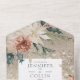 AVAILABLE WITH OR WITHOUT A QR CODE TO SCAN. This design features green pine sprigs, red berries, white poinsettias, and holiday greenery on a soft champagne gold glitter background. A monogram on the back envelope flap completes the simple but elegant look of this all in one invitation. Add a QR code to your invitation so that gusts can quickly access your wedding Website for details, directions, menu options, and more, or add your gift registry Web URL. Personalised All-In-One invitations are a unique combination of both a beautifully printed custom invitation with an easy to tear off perforated RSVP postcard. And they are so easy to use! You simply fold, then seal the back flap with the three included clear stickers, and mail. And when your guests receive your custom invite, they just tear the perforated RSVP Card off and drop it back in the mail to you!