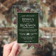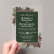 Invite your loved ones to share in your joy on your wedding day with these gorgeous acrylic invitations. The stylish boho chic design features your names prominently displayed in bold letters while the introduction and other notes feature fancy script calligraphy with swashes on the ends of the letters. The text is displayed on a marbled forest green colored background. The outside border of the invite is transparent acrylic with hand painted pinecones and pine branches decorating the corners. Elegant, classy, sophisticated and beautiful, these wedding invitations are perfect for a winter or mountain wedding.