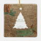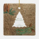 A rustic pine forest themed design with faux burlap texture in the background accompanied with vintage pine cones and branches as well as a simple white silhouette of a Christmas tree and your custom text . Ideal for Christmas gifts and decor. Customise the Christmas ornament with your text and make it your own.
