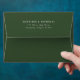 Rustic, dark hunter green envelops featuring your name and address in white text on the envelope's flap. The inside of the envelope features a forest of dark hunter green & sage watercolor pine trees. Designed to coordinate our Rustic Pine Forest wedding collection.
