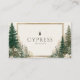 Embrace the rustic charm of a tranquil pine forest with this elegant woodland business card. The design features beautifully detailed watercolor illustrations of majestic evergreen trees, set against a warm, textured cream background with a delicate gold splatter. The forest floor is adorned with an array of delicate woodland botanicals, including ferns, white anemone florals, and a charming mushroom, all in natural, earthy tones. A sophisticated gold leaf frame encases the central area, adding a touch of refined elegance to the rustic aesthetic. This design's natural charm is wonderfully suited for artisans, woodworkers, and eco-friendly brands. It's an excellent choice for businesses located in mountain or forest regions, such as cabin rentals, lodges, or outdoor adventure companies. Additionally, its cosy aesthetic is perfect for florists specialising in rustic arrangements, photographers, or for anyone planning a woodland or winter-themed event.