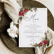 The Rustic Pine Poinsettia Floral Wedding Menu is the perfect addition to your winter wedding celebration, offering a charming and elegant touch to your reception. Featuring a beautiful design with pinecones and green pine needles, this menu card complements your rustic winter theme while showcasing the delicious offerings for your guests. It adds a warm, natural element to your table settings, creating an inviting atmosphere and enhancing the overall aesthetic of your special day.
