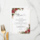 The Rustic Pine Poinsettia Floral Wedding Menu is the perfect addition to your winter wedding celebration, offering a charming and elegant touch to your reception. Featuring a beautiful design with pinecones and green pine needles, this menu card complements your rustic winter theme while showcasing the delicious offerings for your guests. It adds a warm, natural element to your table settings, creating an inviting atmosphere and enhancing the overall aesthetic of your special day.