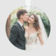 Rustic Christmas ornament for a newlywed or new family featuring illustration of pine tree leaves. Add your initial at the top and photo on the back.