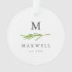 Rustic Pine Tree Leaves Monogram Christmas Ornament