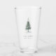 Custom drinking glasses great for a hotel, motel, bed and breakfast business, featuring a single watercolor pine tree. Personalise with your business name.