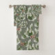 Beautiful rustic winter forest tree pattern bathroom towel set featuring mountains, deer, forest trees and birds. Visit our shop to view a matching shower curtain.