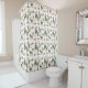 Beautiful rustic forest trees with a bear, buck and fox pattern shower curtain set on a neutral white background. Visit our shop to view our matching bath decor items.