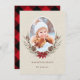 Send holiday cheer to your family and friends. This design features watercolor pine corns, red berries and poinsettias on a faux burlap canvas texture background with winter plaid pattern on the back. For more advanced customisation of this design, Please click the "Customise" button. Matching items are also available.