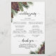 These wedding programs are elegant and tasteful, while still being budget friendly. The rustic design features hand painted watercolor pinecones and pine branches in shades of forest green and chestnut brown. The typography features lacy black script calligraphy, and there is room for details on the ceremony, the bridal party, and a short thank you. Perfect for an outdoor, winter, or holiday themed wedding.