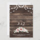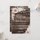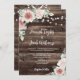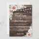 Allow your guests to feel the rustic charm of your wedding with this blush pink floral wedding invitation. The background features a barn wood look with string lights and a bouquet of roses and eucalyptus, giving the invitation country charm. This sweet and romantic invitation is perfect for a rustic outdoor wedding and will leave your loved ones eager to join you for your special day.