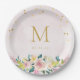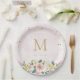 Rustic Pink Floral Initial Bridal Shower Paper Plate