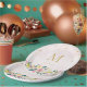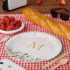 Bridal party paper plates featuring elegant rustic pink floral bouquet with personalised initial.
