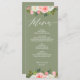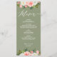 Rustic Pink Floral Sage Green Flat wedding Menu