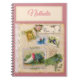 Personalised spiral notebook with pretty vintage floral patterns on a rustic, textured look background.