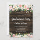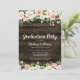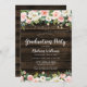 This pink floral graduation party invitation is perfect for a country themed celebration. This unique design features blush pink and cream watercolor flowers, string lights and a dark barn wood background. Easily personalise this invite with the online template fields.