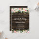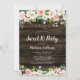 Beautiful pink watercolor flowers and greenery accent this elegant country sweet 16 birthday party invitation. This design features strings lights and a dark barn wood background, with a modern script font. Perfect for a girly western themed sweet sixteen!