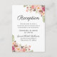 Let your guests know your reception details with our rustic pink flower wedding reception insert cards. The wording is completely customisable - if you need to change the font, font colour, size or the placement of the text boxes just click on the "Click to customise further" button to change those things. Be sure to check out our large selection of coordinating items by browsing the Rustic Pink Floral Wedding collection!
