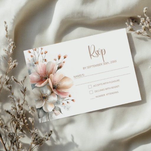 A rustic pink floral wedding RSVP response card to include with your invitation for your guests to confirm their attendance on your special day.