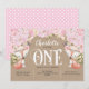 Rustic, Pink Floral, Woodland, Girl 1st Birthday Invitation