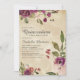 Romantic and rustic plum purple and blush pink watercolor floral and green leaves on a botanical garden-style Quinceañera birthday party invitation for girls. Contact us for help with customisation or matching products