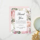 Beautiful pink rose floral arrangements and elegant calligraphy create a feminine and classy funeral note card.