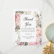 Beautiful pink rose floral arrangements and elegant calligraphy create a feminine and classy funeral note card.