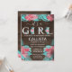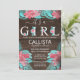 Rustic Pink Teal Floral Wood Girl Baby Shower Invitation