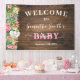 Rustic Safari Wild Baby Animals with Pink Flowers Welcome Baby Shower Banner Sign. Change text to the design. For additional changes (font color, font style), click on personalize, scroll down and click on the link "Edit using Design Tool". ** Check collection for all matching designs **