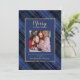 Rustic Plaid Blue Gold Merry Christmas 2 Photos Holiday Card