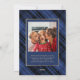 This elegant rustic Christmas greeting card features a rich blue and black plaid background with luxurious gold accents. The front of the card includes space for a family photo and a heartfelt holiday greeting, "Warm wishes for a season filled with love and laughter." The reverse side allows for an additional photo and a message of gratitude, making it perfect for sharing the joy of the season with loved ones. The classic plaid pattern and gold detailing add a touch of sophistication, making this card a timeless choice for spreading holiday cheer.