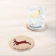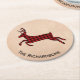 Rustic cabin themed pulp board paper coasters done in a craft paper look with graphics of a red and black buffalo plaid stag silhouette. Personalise the black arched text to suit your needs.