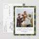 Modern green plaid Christmas postcard featuring a large family photo on the front with space for your name and year. The back includes a place for your own message and a return address. A timeless and classic holiday design to share festive greetings.