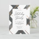 Rustic Plaid Grey and Gold Holiday Party Invitation